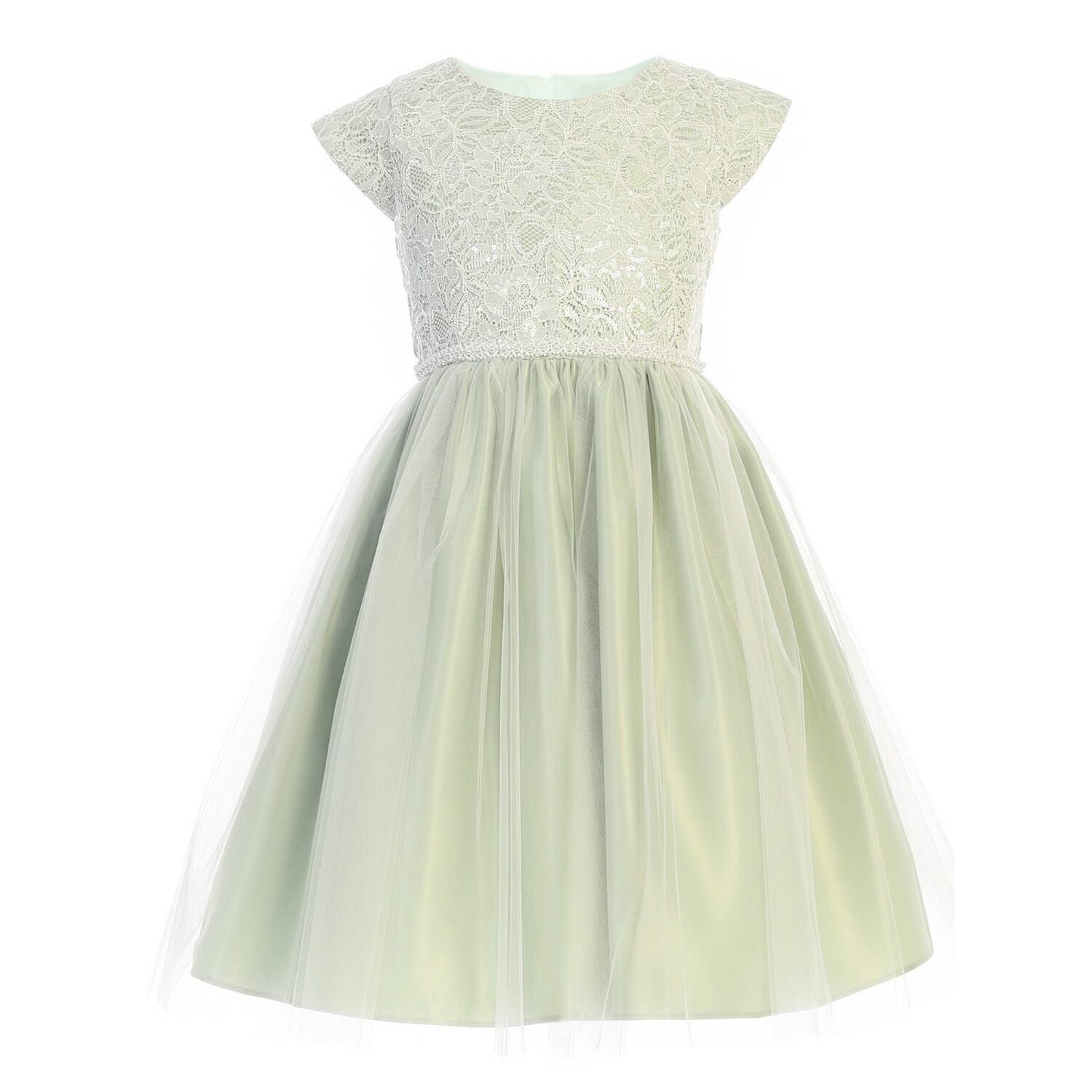 Shop Sweet Kids Sage Sequin Lace Pearl sage flower girl dress
