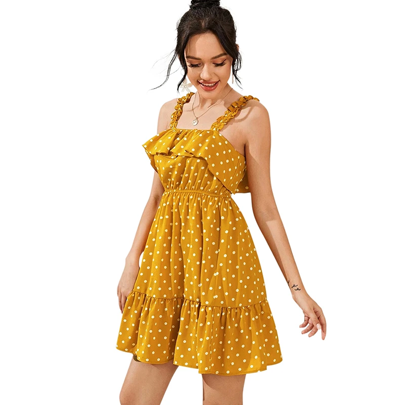 Sexy Spaghetti Strap Ruffle Polka Dot high waisted summer dresses