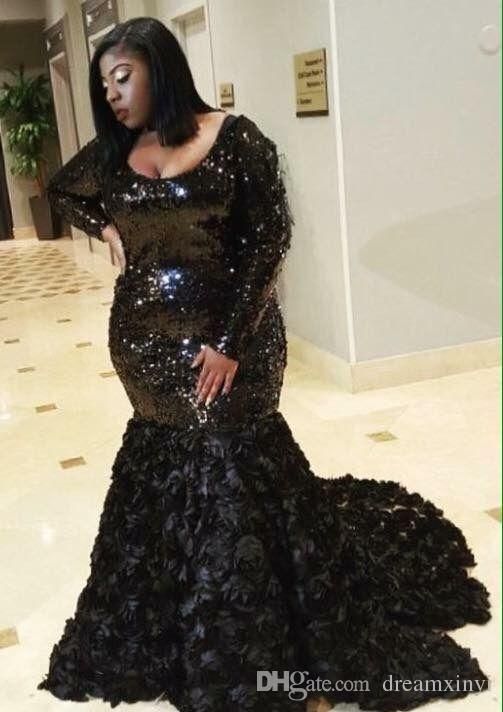 Sparkly Black Plus Size Mermaid Prom plus size mermaid prom dresses 2019