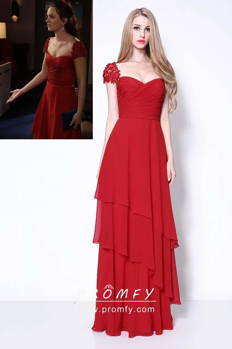 Red Asymmetrical Ruffled Chiffon \u0026 Lace sleeveless prom dress