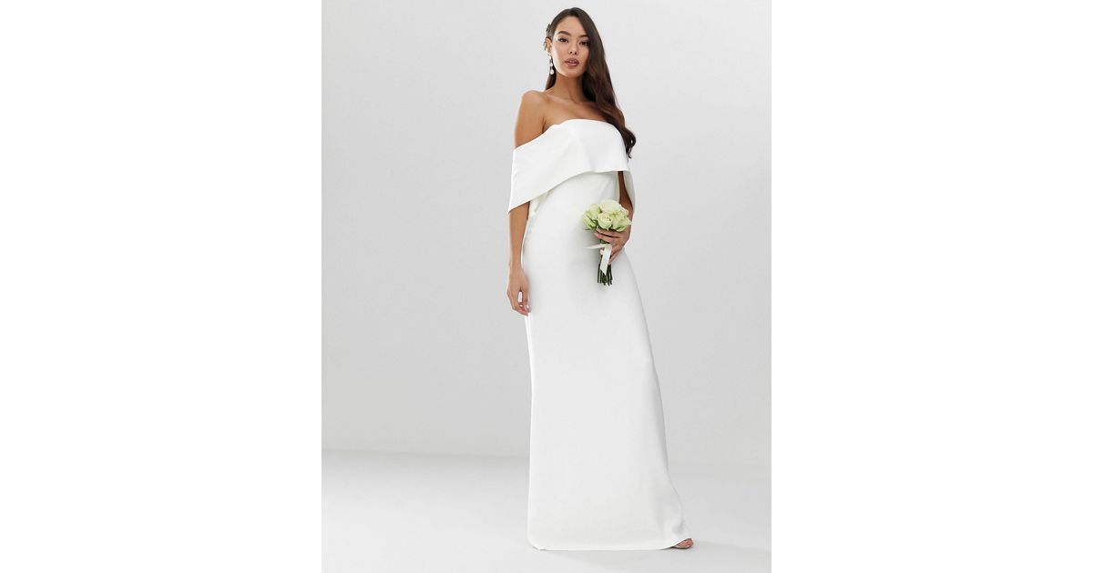 Crepe Off Shoulder Wedding Column Dress white crepe dress