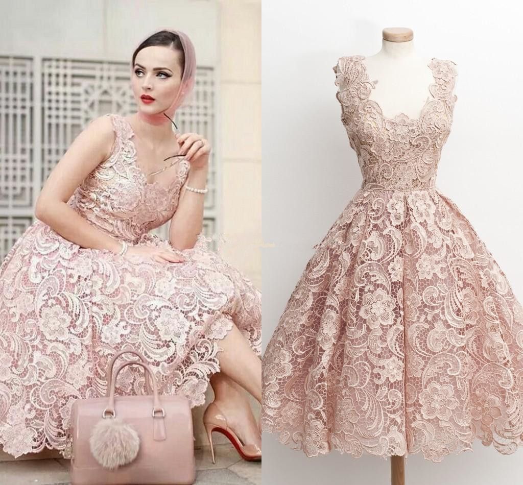 Fashion Pink Lace Short Prom Dresses princess homecoming dress
