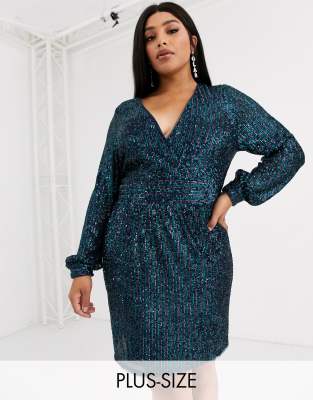 TFNC Plus plunge wrap front mini dress asos sequin dress plus size