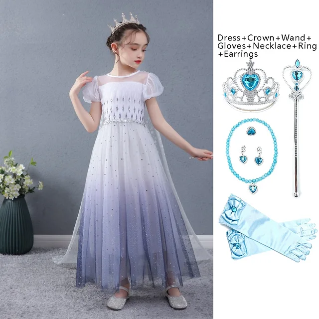 Girls White Elsa Dress with Detachable synthetic long frocks