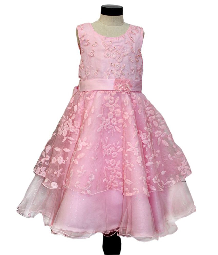 Kinder Closet Pink Synthetic Frocks synthetic long frocks
