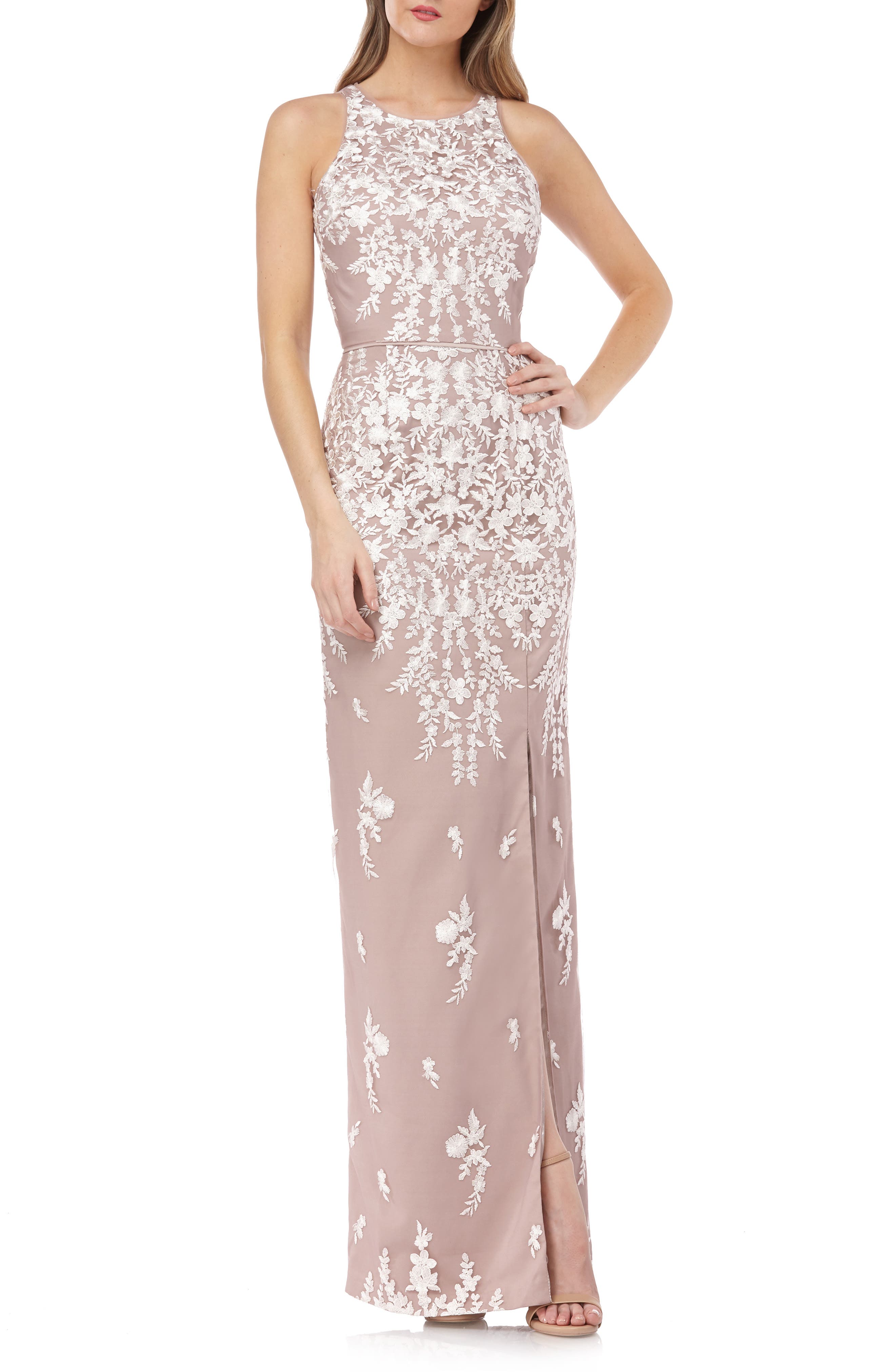 JS Collections Floral Embroidered Mesh js collections evening dresses