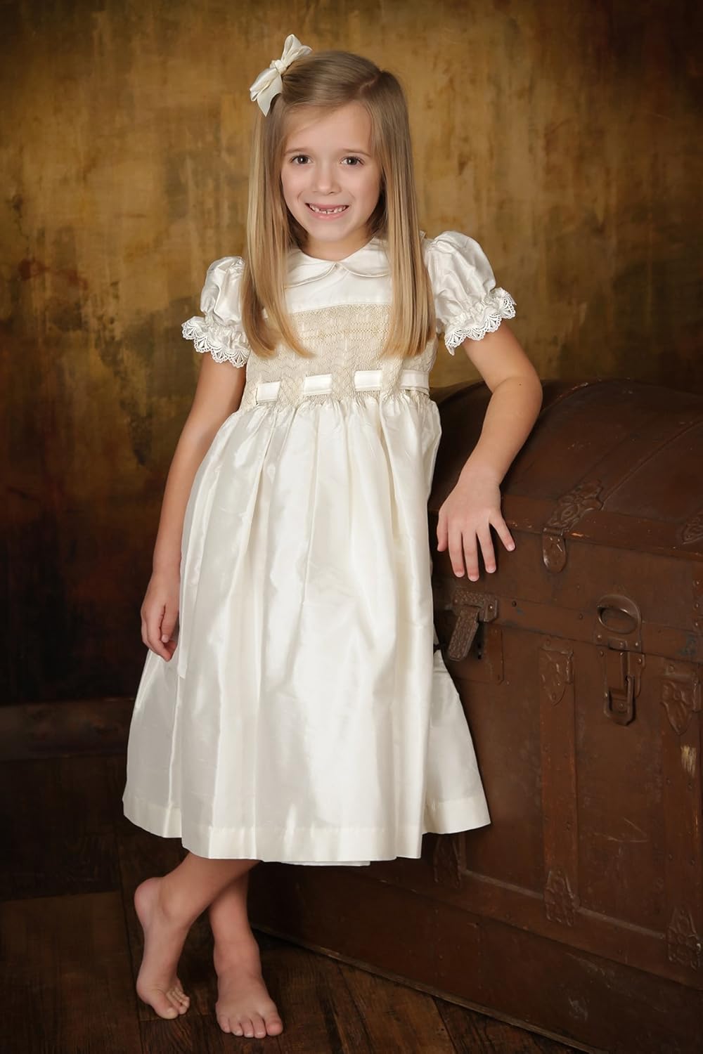 ivory smocked flower girl dress