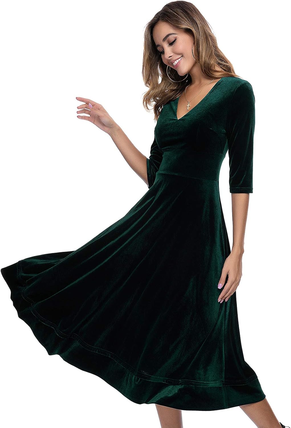 deep v neck midi dress