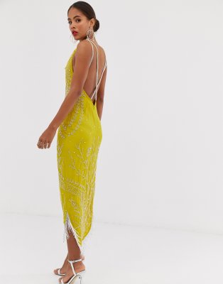 ASOS DESIGN pearl embellished asos orange fringe dress