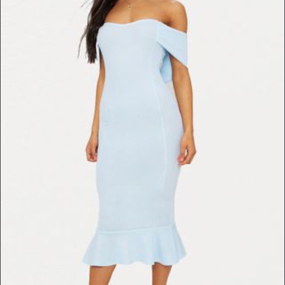 Pretty Little Thing Bardot Frill Hem black bardot frill hem midi dress