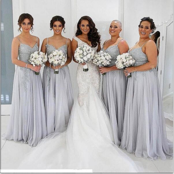 2019 Elegant Silver Chiffon Bridesmaid silver bridesmaid dresses