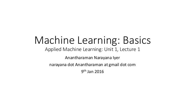 Machine Learning Lecture 2 Basics machine learning from basics