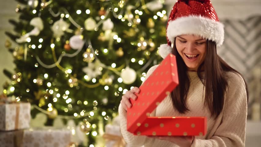 Young, Happy and Emotional Girl : video girl opening christmas presents