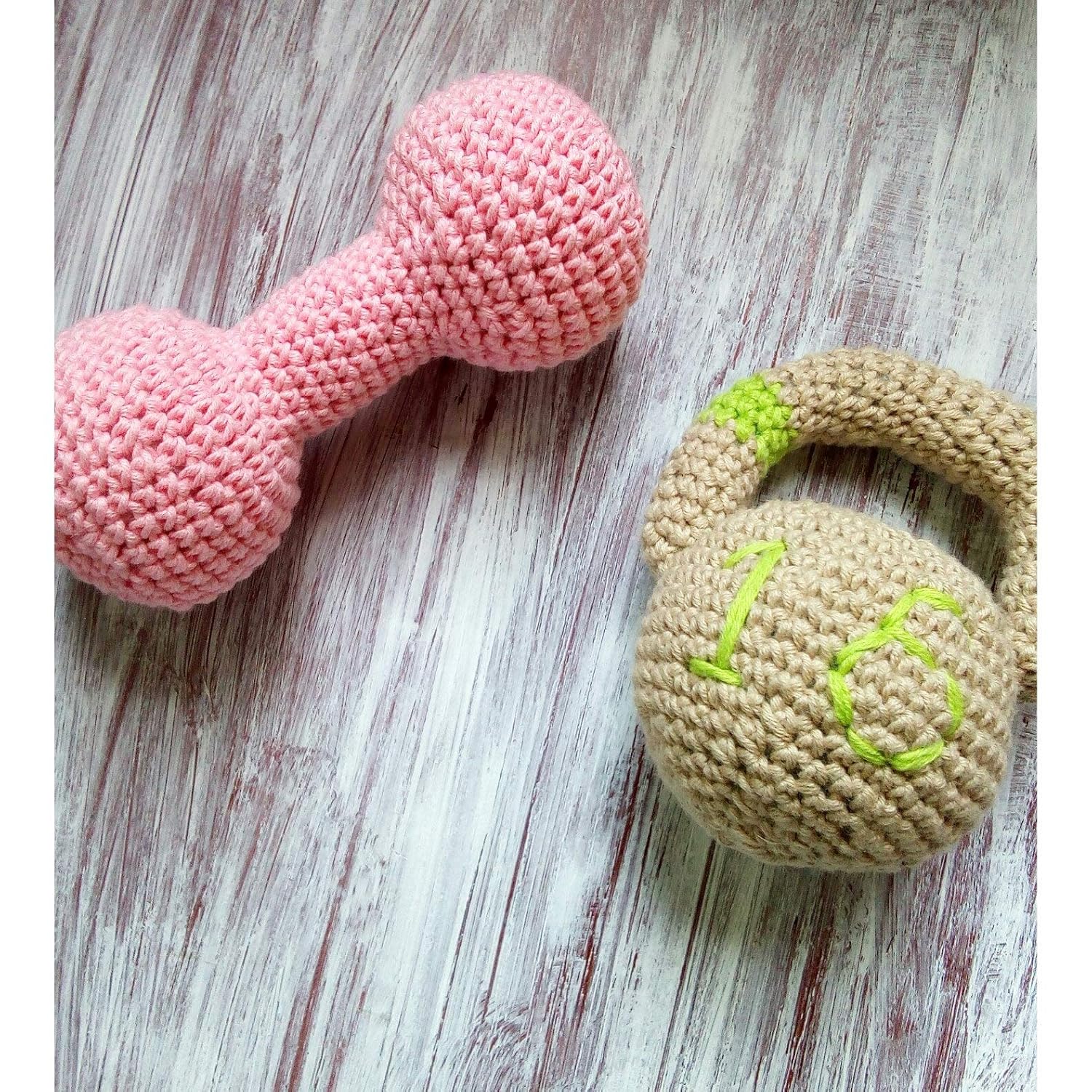 Dumbbell/Kettlebell crochet toy baby dumbbell teether