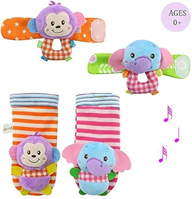 Deardeer 4 x Baby Infant Soft Toys deardeer baby infant animal wrist and feet rattles