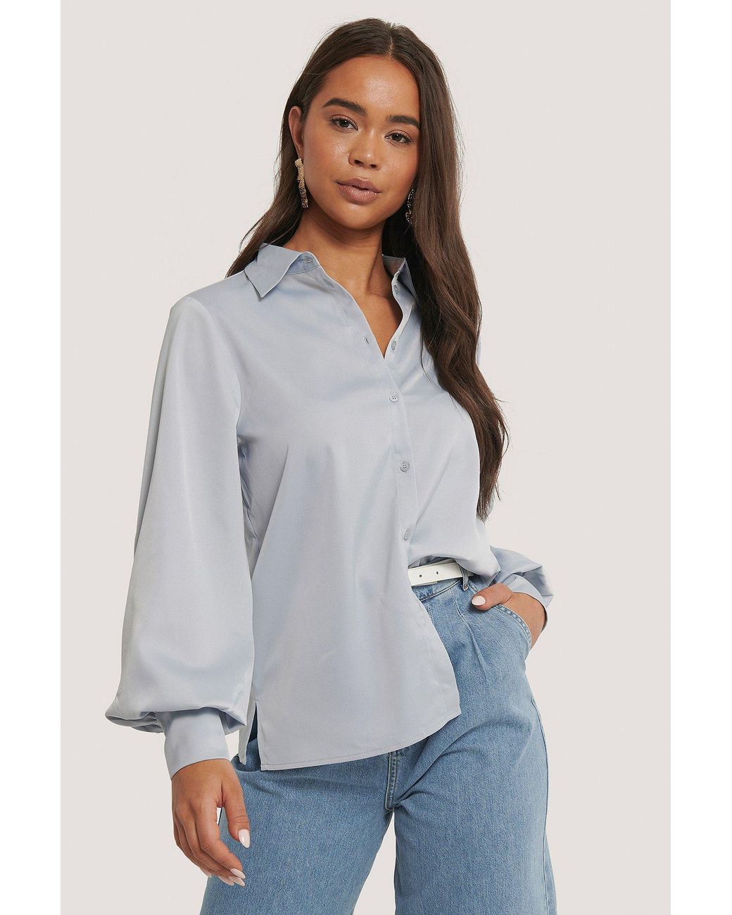 NA-KD Synthetic Blue Flowy Oversized oversized flowy shirts