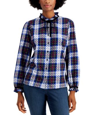 Charter Club Cotton Plaid Dot-Print macys cotton blouses