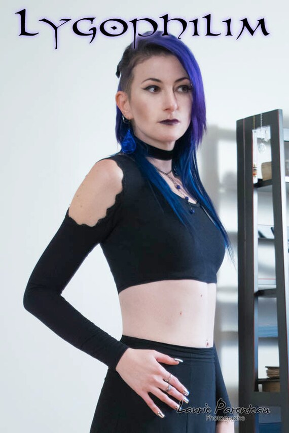 Gothic long sleeve crop top / open long sleeve shoulderless crop top
