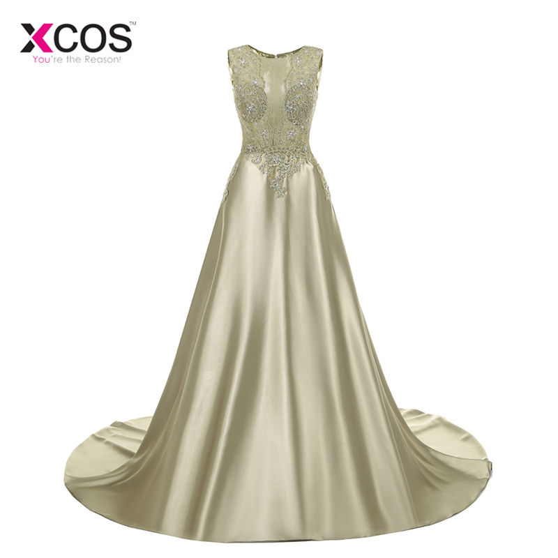 Sexy Sheer Neck Satin Evening Dresses formal lace tops plus size