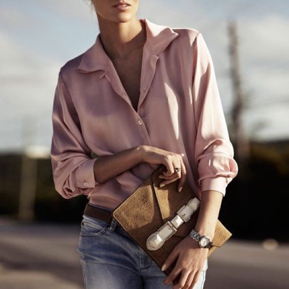 pink satin button down