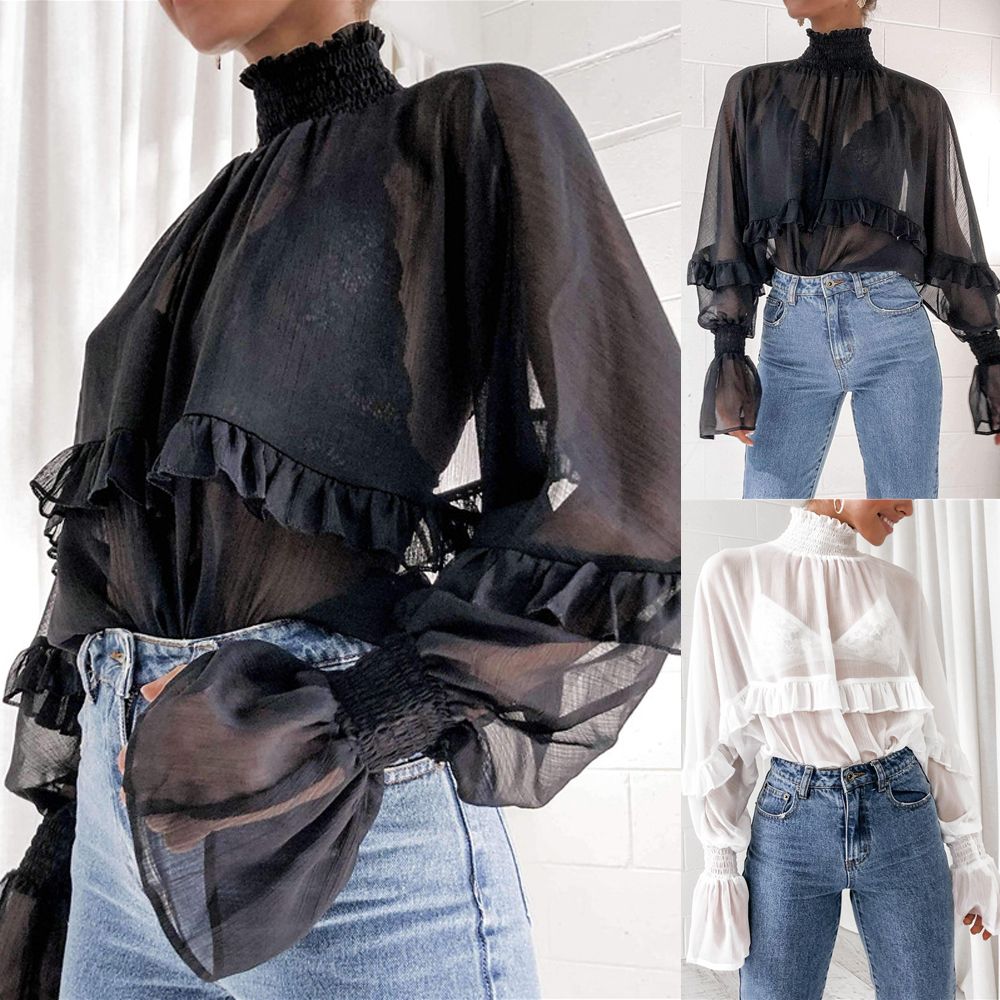 2021 Chiffon Blouses Women Autumn chiffon turtleneck blouse