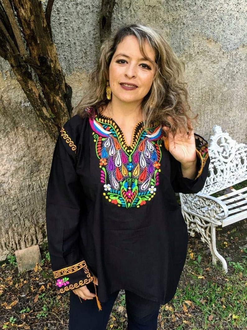 Amazon.com: Super Bohemian Mexican plus size black dressy blouses
