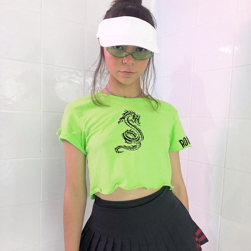 Neon Green T-shirts Summer Woman 2019 neon crop