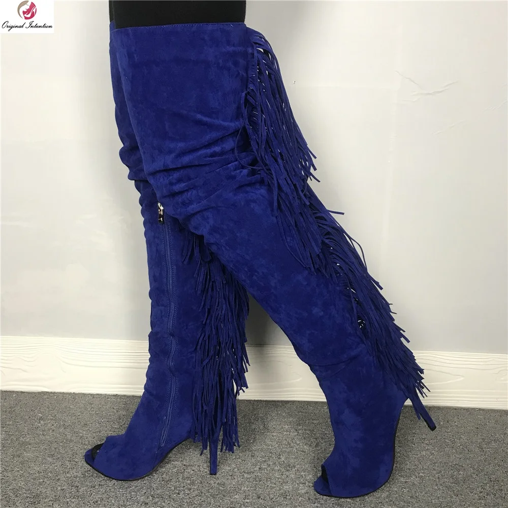 thigh high fringe boots