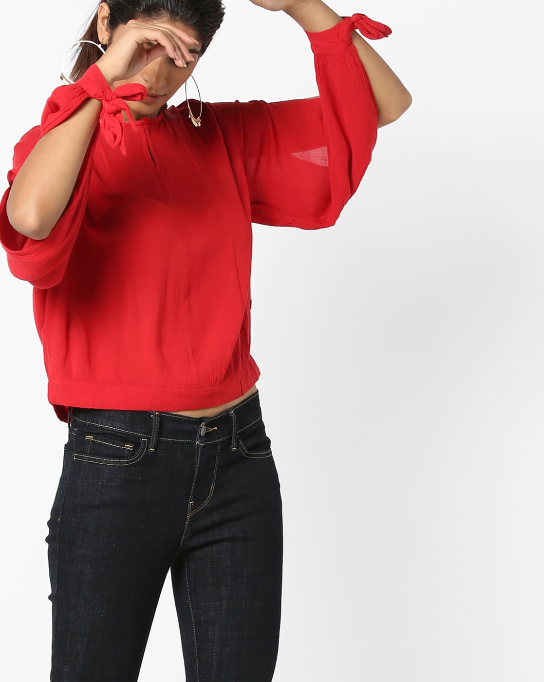 Buy Coral Red Tops for Women by ONLY keyhole neckline top
