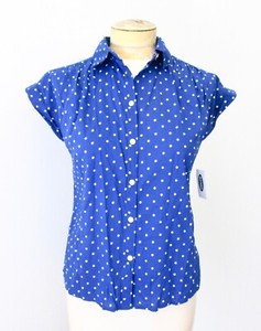 NWT Old Navy Royal Blue White Polka Dot white blouse with blue polka dots