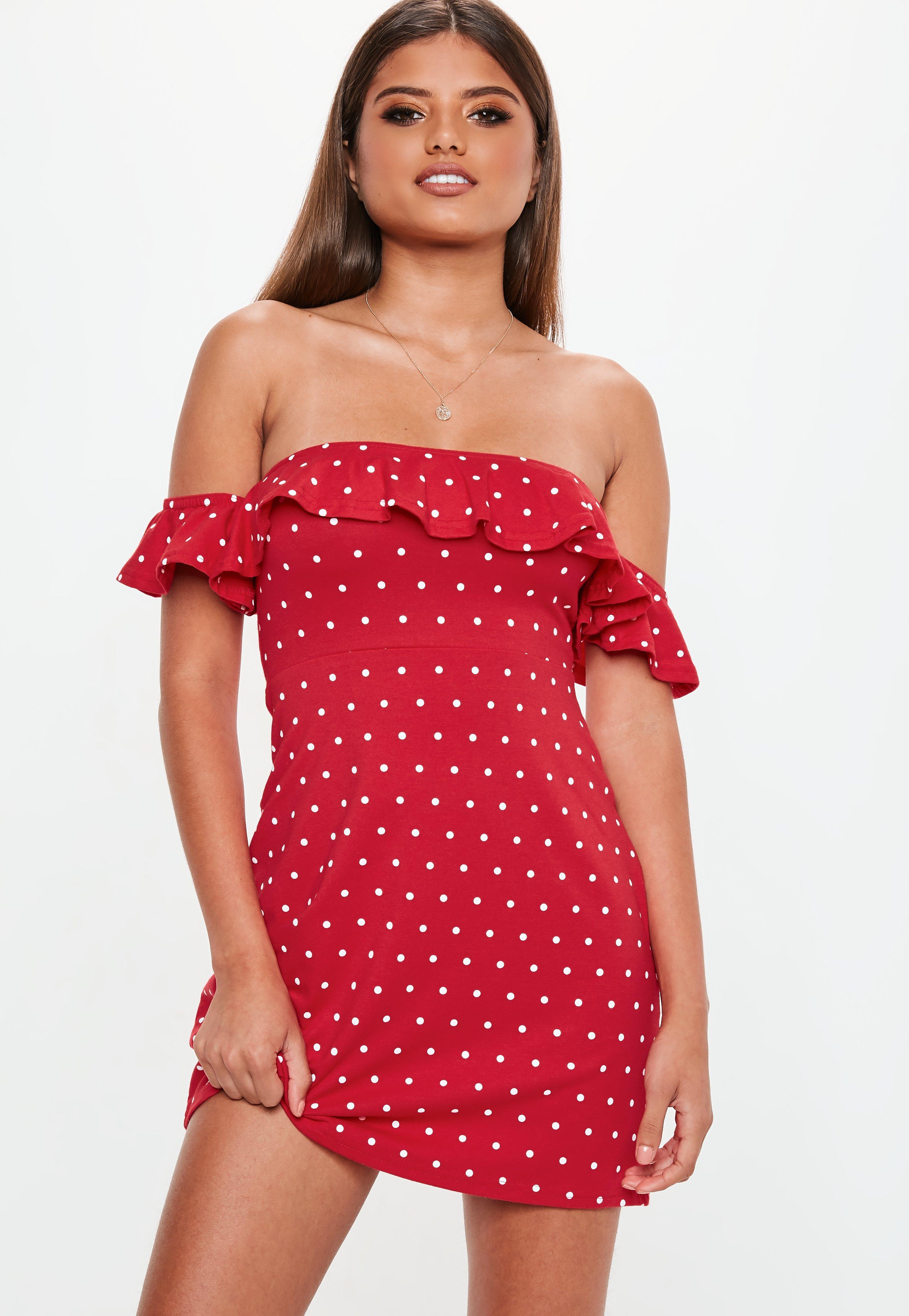 Red Polka Dot Bardot Frill Dress - Lyst red polka dot bardot top