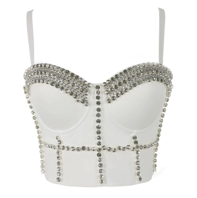 Women's Diamond bling jazz dance bra blinged out corset tops