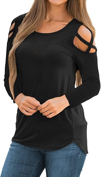 Dorimis Women Cold Shoulder Long Sleeve plain black cold shoulder top