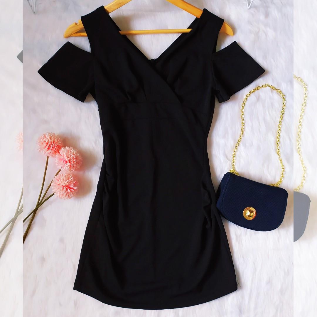 Korean Plain Black Cold Shoulder Mini plain black cold shoulder top