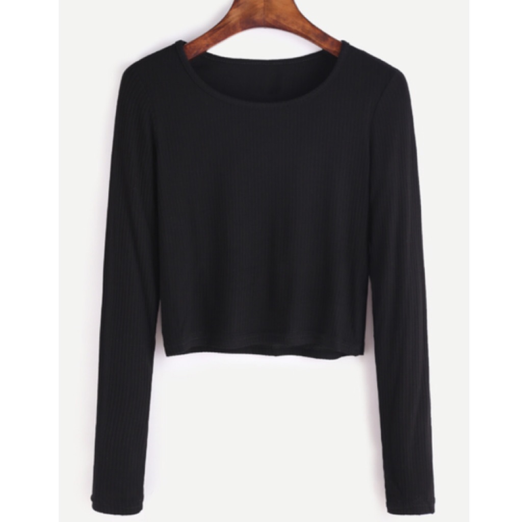 Black Long Sleeve Crop T-Shirt | Shopee plain black long sleeve crop top