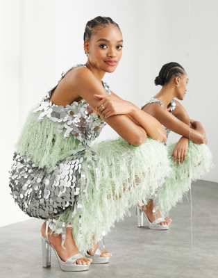 TFNC sequin draped crop top in silver asos sequin crop top