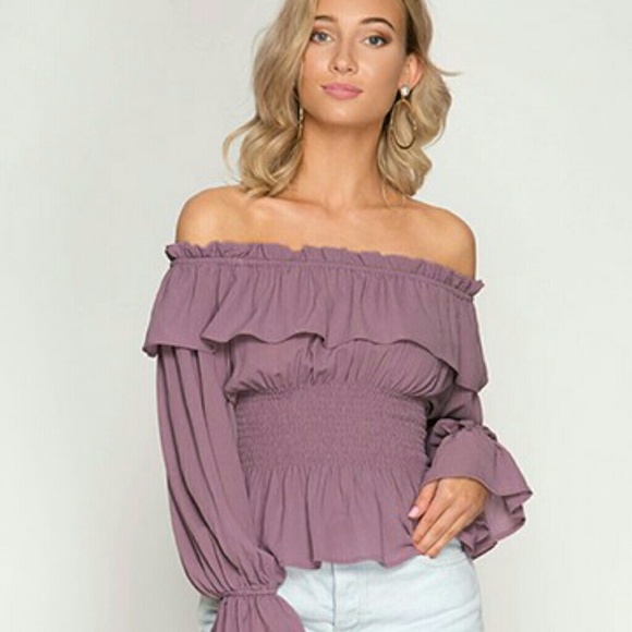 Tops | Lilac Off Shoulder Ruffle Sleeve lilac ruffle top