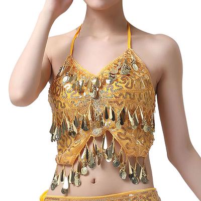 Women Coins Belly Dance Bra Top Blouse gold sequin dance top