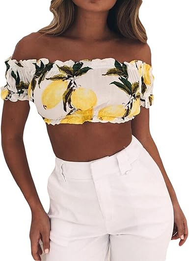 ZMLIA Womens Lemon Print Crop Top lemon yellow crop top