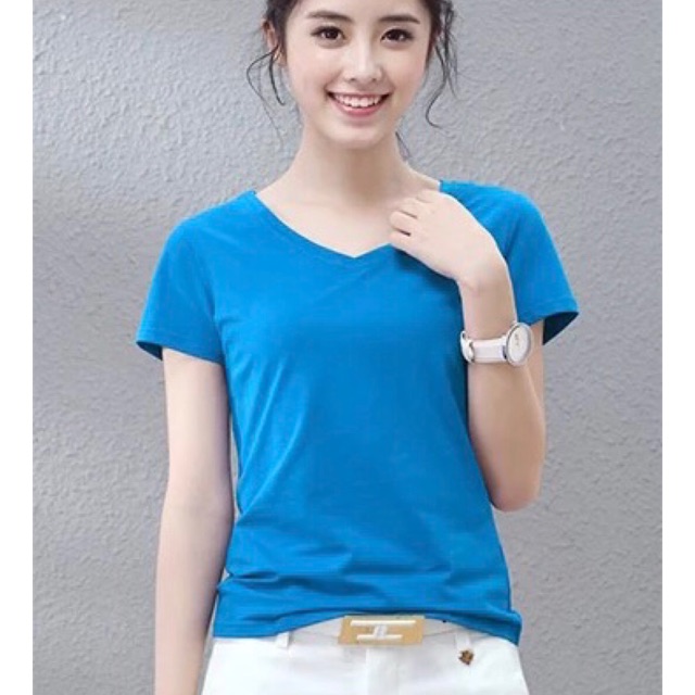 Basic Hertee V Neck Aqua Blue Tops aqua blue top