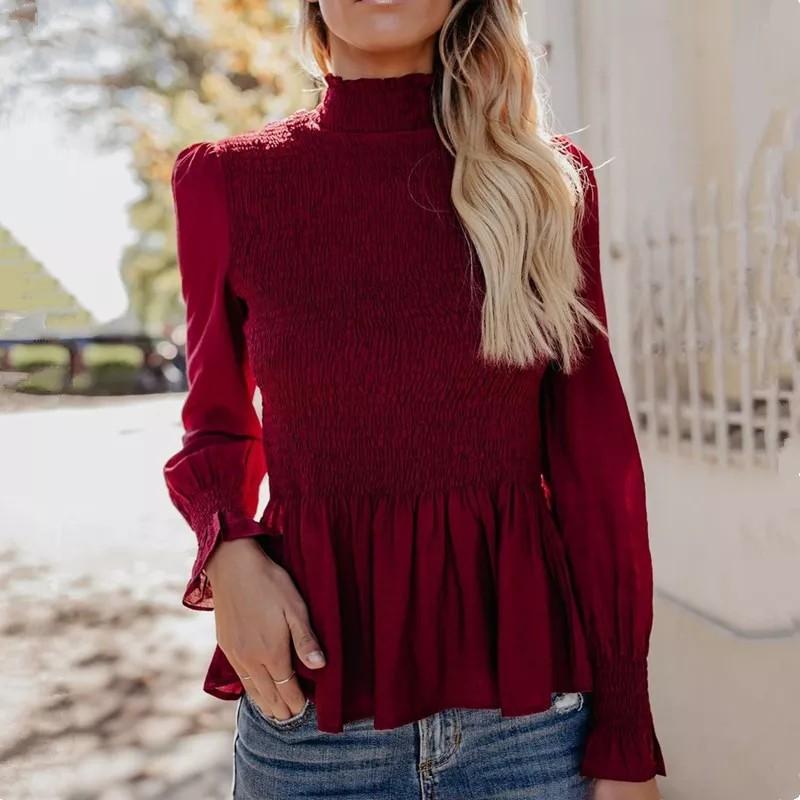 High neck smocked waist peplum top high neck peplum top