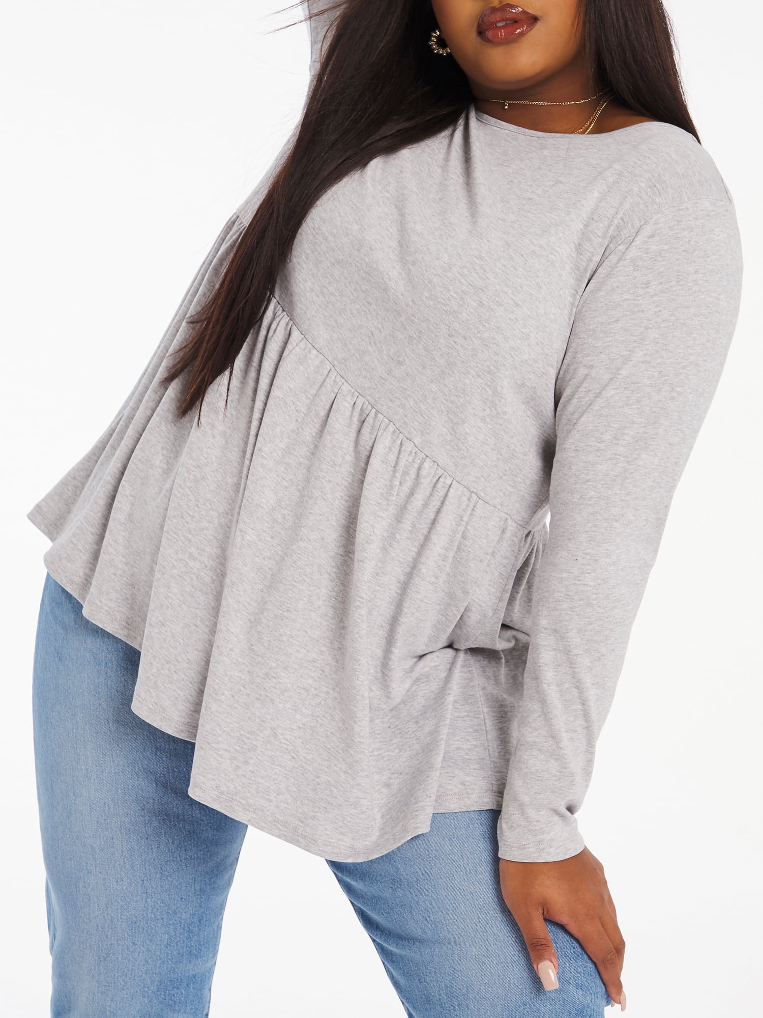 Size Ribbed Peplum Long Sleeve ribbed peplum top