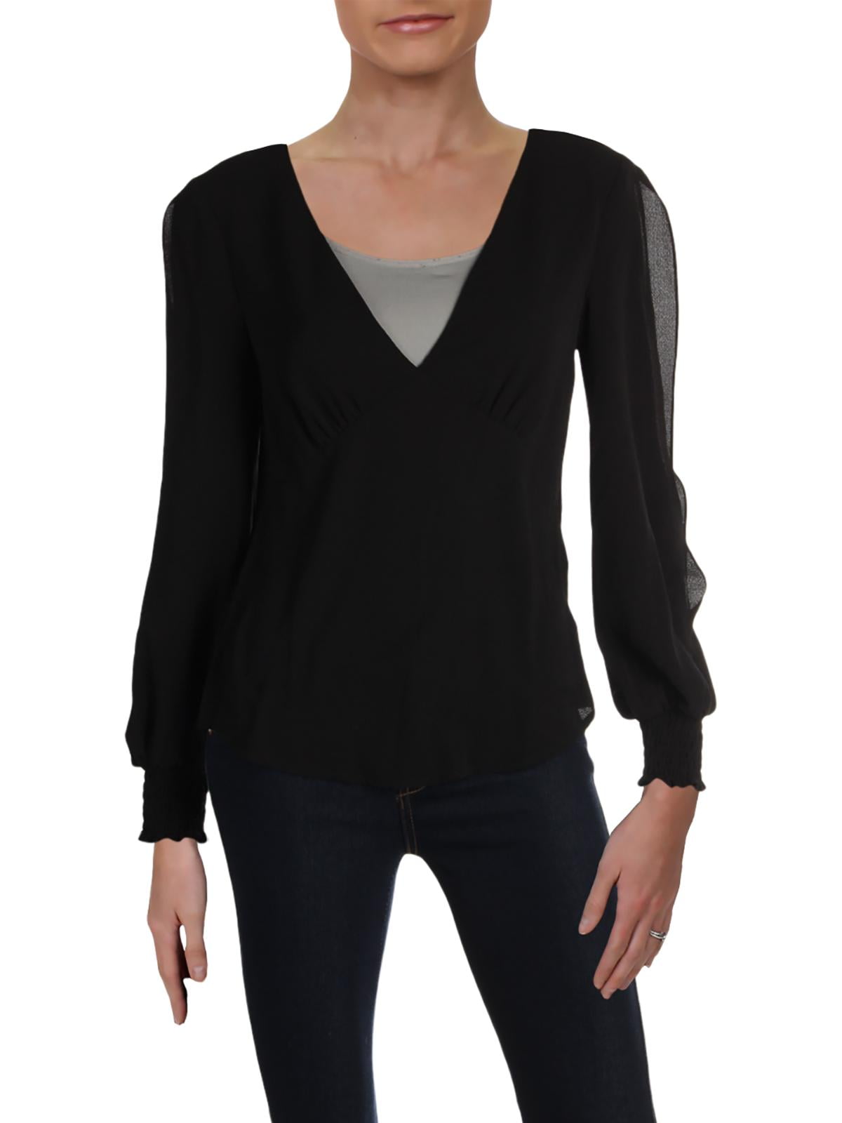 A. Moss - A. Moss Womens V-Neck Slit slit sleeve blouse