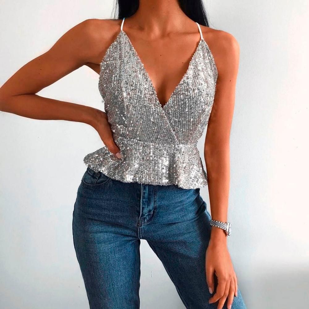 2021 Sexy Womens Tank Top Sequin sparkle top plus size