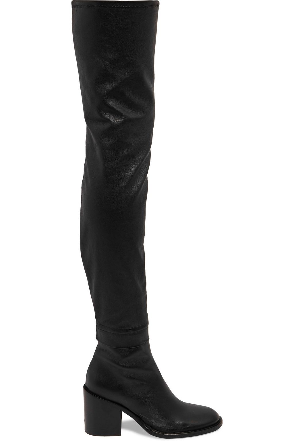 stretch leather thigh high boots