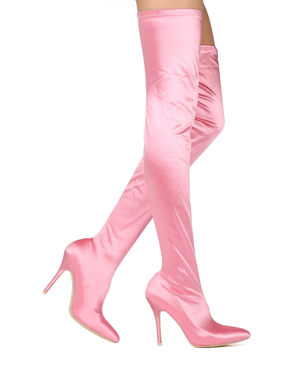 pink satin thigh high boots