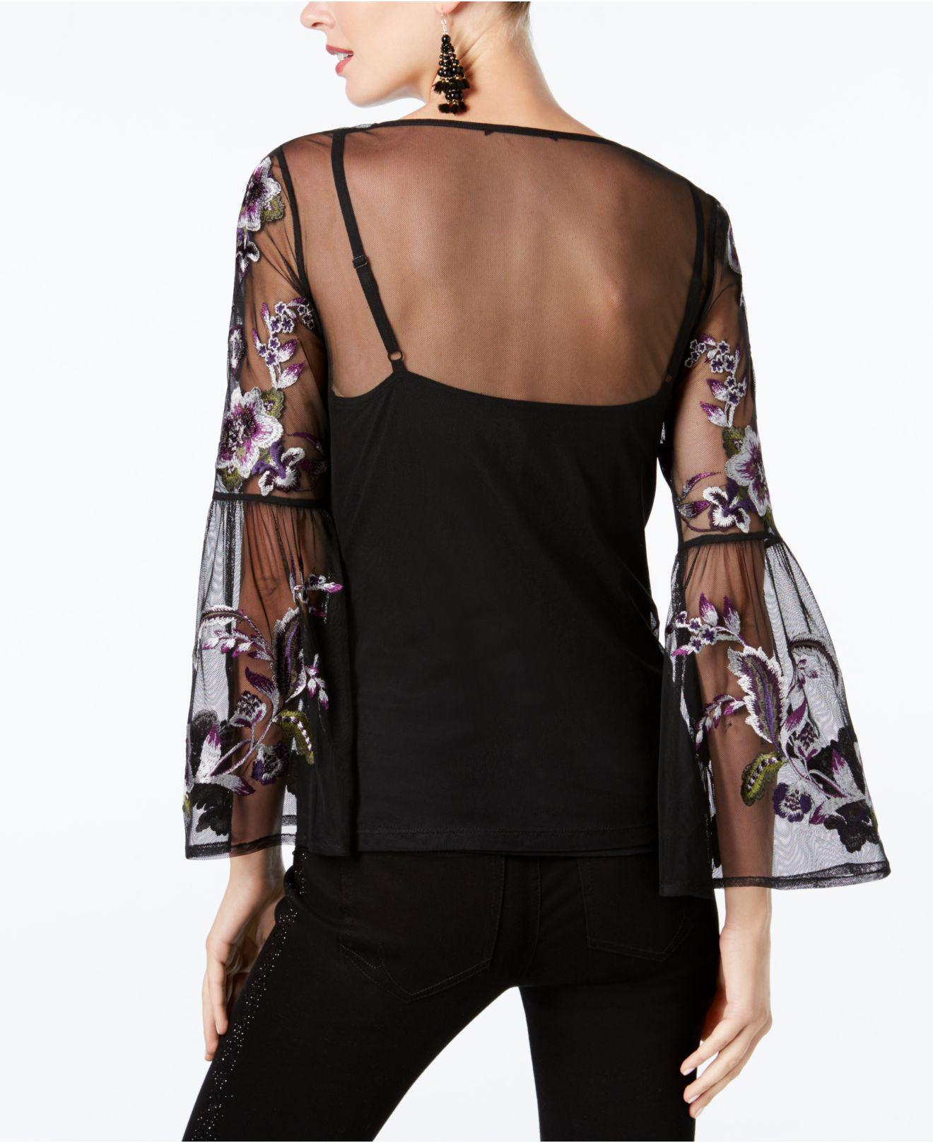 INC International Concepts Synthetic sheer bell sleeve top