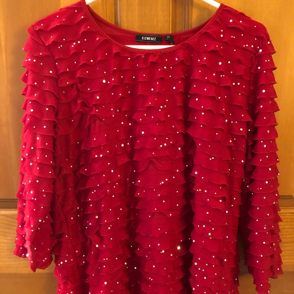 Elementz Tops | Elementz Red Ruffle And red sparkle blouse