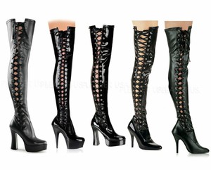 Pleaser Adore 3050 Black Patent Thigh