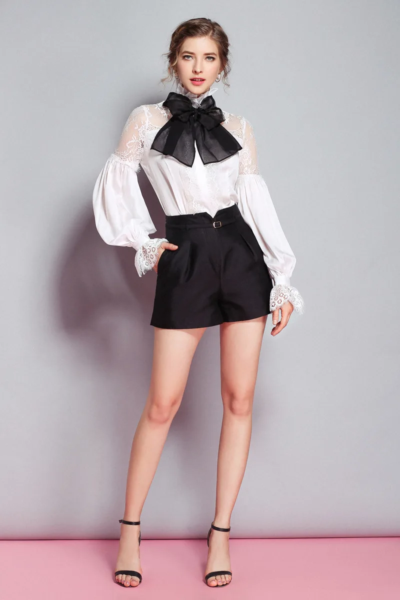 2019 Spring Fashion Blouse Shirt Women sheer bow tie blouse